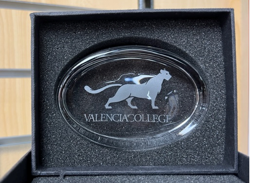 The 4" Oval Paperweight boasts a classic and timeless design that is straightforward and clean. It serves as an excellent gift, promotional item, or token of recognition. The engraved Valencia College Puma adds a touch of fun and allows you to express your appreciation and Puma Pride.