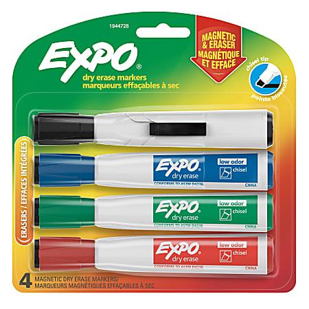EXPO® Magnetic Dry Erase Markers With Eraser, Chisel Tip, Assorted Ink Colors, Pack Of 4